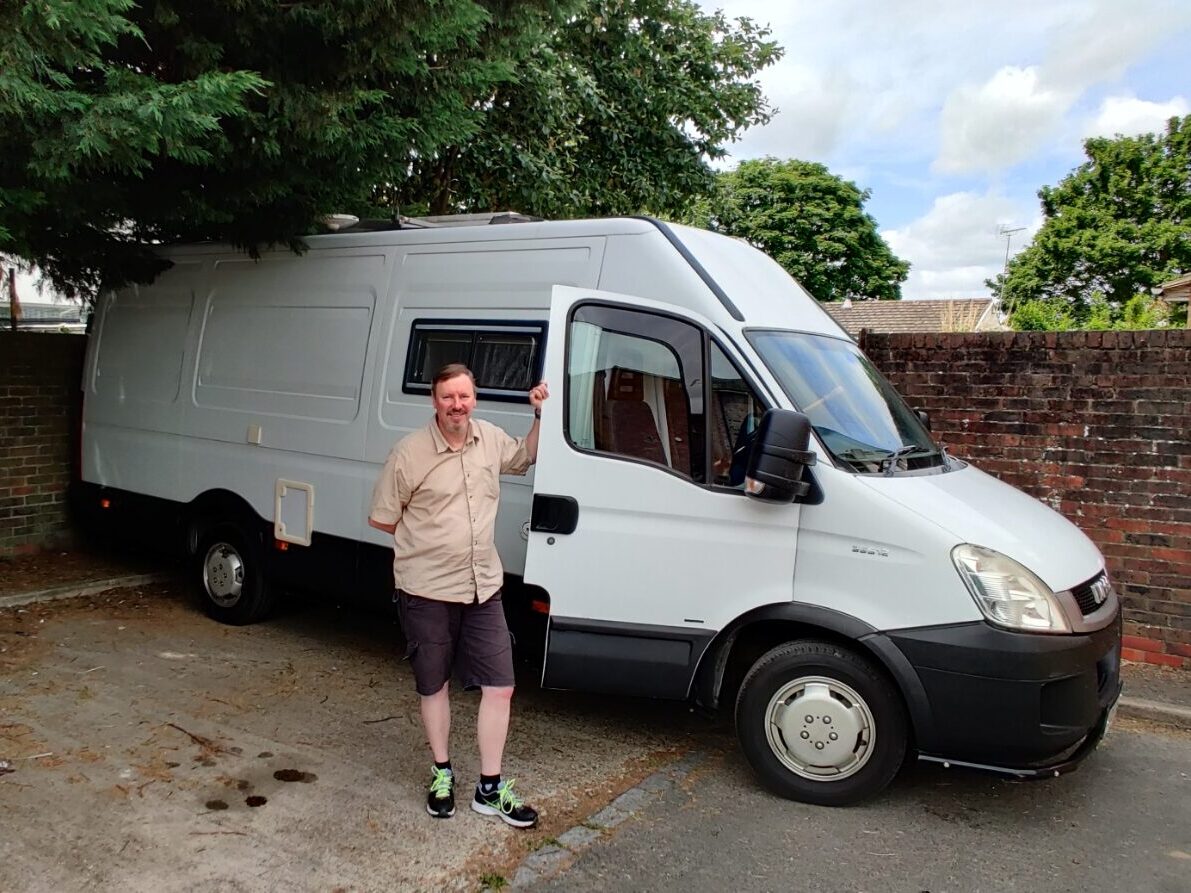 As you may have seen in the welcome page, one of my passions is cycling. I cycled many thousands of miles on long-distance cycle-tours. The longest trip I did on my bike was from Canterbury, in Kent / UK, to Rome in Italy. I followed the tracks of a known pilgrimage route called Via Francigena. During the 29 days it took me to get to Rome by bicycle, I slept in hostels, B&Bs, pensions, hotels and also in a tent on camping sites. A few of these nights in the tent were under heavy rain and while I was lying down on my air mattress, in my sleeping bag trying to sleep, I remember thinking, “I don’t like this at all. I need to buy myself a campervan and sleep on a proper bed”. And so, I did. The picture you see at the top was taken in June 2021 a few hours after I bought my 1st campervan, which is still the one I travel with today. It’s a 2007 Iveco Daily campervan, so not new by any standards, but it has been well kept and serviced, and it met all my “must have” requirements at the time. I did spend a humongous amount of time (and some money) making improvements after the purchase. The van was purchased brand new by the 1st owner with the purpose of being converted to a so called “racing van”. The racing comes from the fact it carried the racing vehicles, which in the case of the 1st owner was a racing kart. The 2nd owner was a motocross racer, and the van carried his motorbike under the bed. In my case it carries 2 bicycles, but there is no racing involved, quite the contrary. I like the slow pace of exploring places by bicycles (or occasionally on foot on a hike).